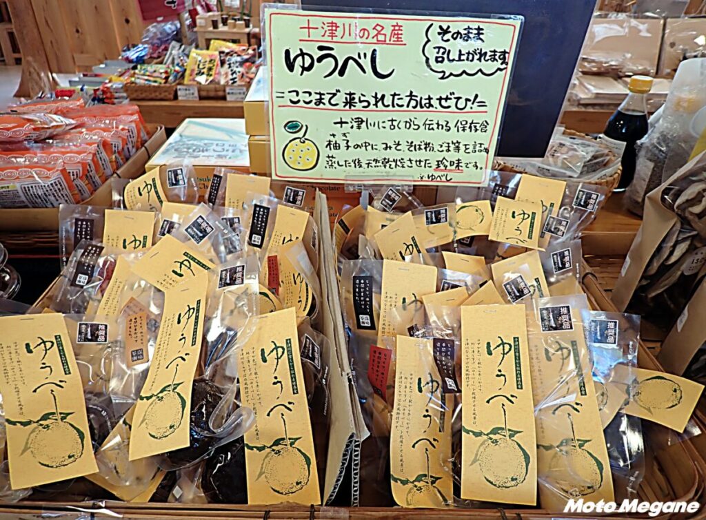 十津川村の郷土料理。柚子の中味を取り除いて、中に米こうじ味噌、そば粉、いりごま、しいたけなどを詰めて蒸し、寒風に晒して乾燥させた保存食。食べ方は、薄くスライスしてそのまま食べたり、ご飯にのせてお茶漬けにしたり、短冊状に切ってシソや野菜で巻いて食べたりするそうだ。