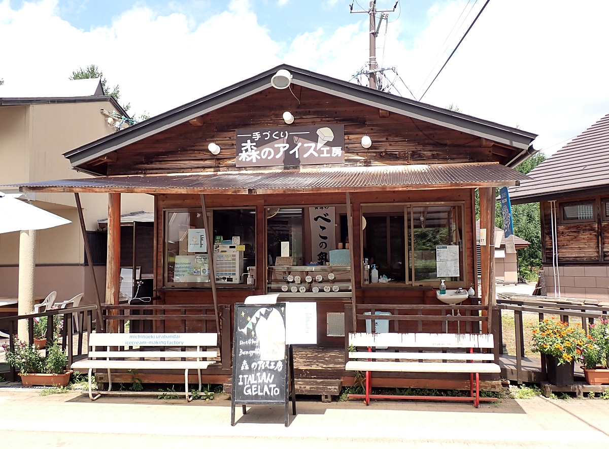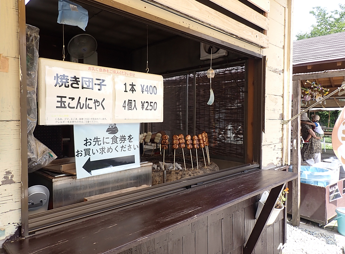 屋外にある「だんご屋」では、焼き立ての団子からじゅうねん味噌の香ばしい香りが漂う。ソフトクリームや軽食、ドリンク類も販売する。「森のアイス工房」では、会津産の牛乳を使った約10種類のジェラートを味わえる。人気No.1は山塩で、地元産の花豆やカフェオレなども人気だ。