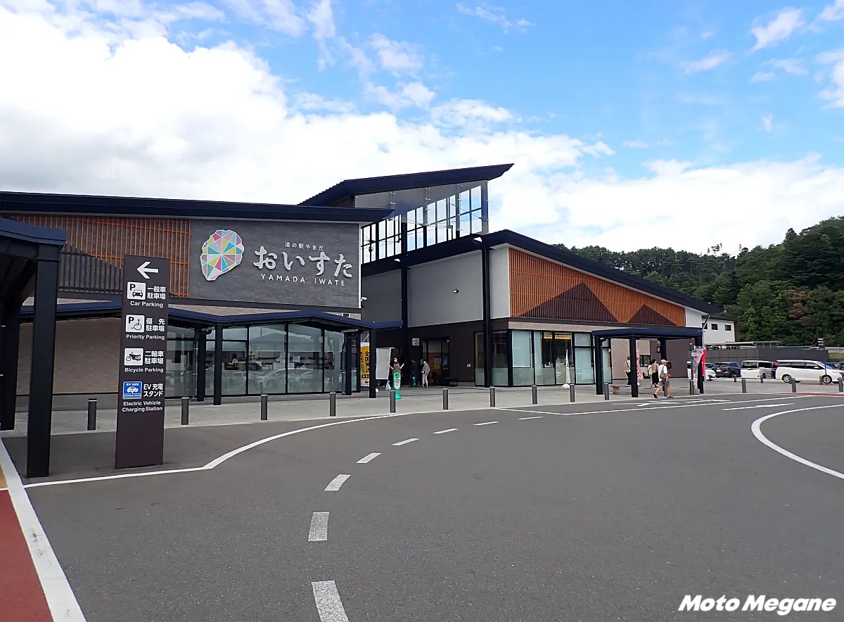 『道の駅 やまだ』は、R45沿いに位置。令和5年7月に三陸沿岸道路・山田ICからすぐの場所に移転リニューアルオープンした。駐車場内には屋根付きのバイク用の駐車場が4台分用意されている。施設愛称の「おいすた」は、山田町の方言の「おいでください」や、町で養殖が盛んなことから牡蠣の「オイスター」という意味が込められている。町のシンボルの大島(オランダ島)・小島をモチーフとした建物内には情報コーナー、産直売店、レストランなどを備える。情報コーナーやテラス席に、休憩スペースが設けられている。