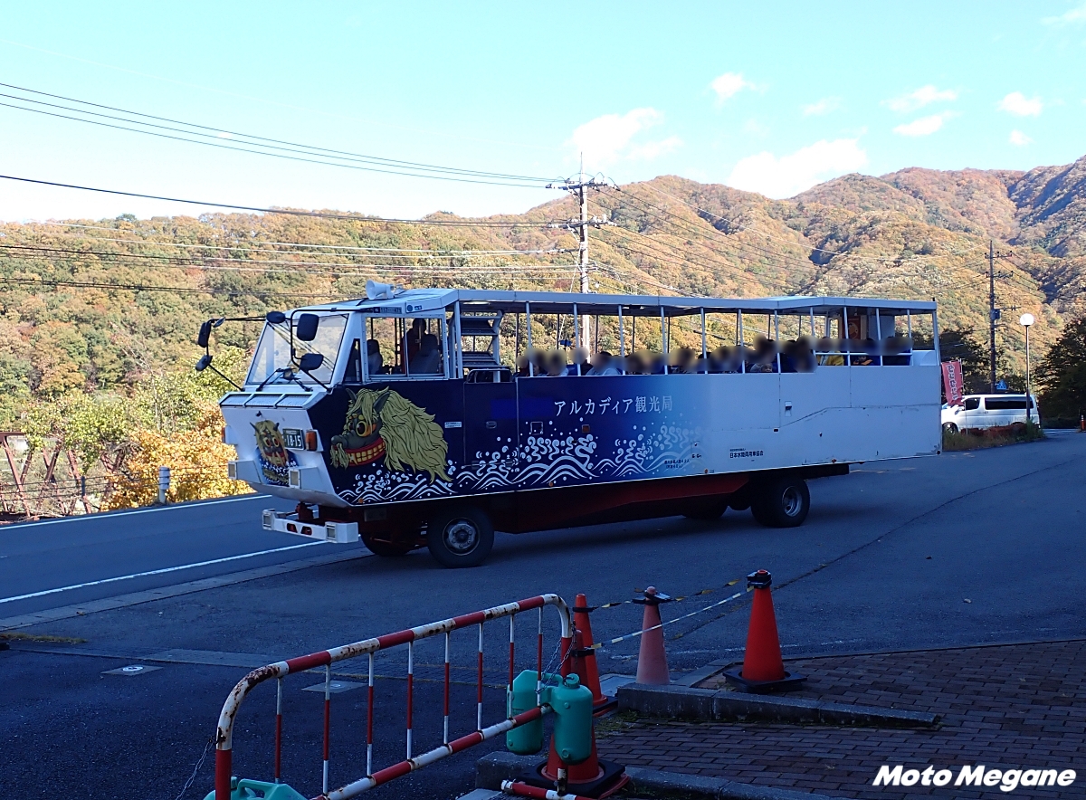 また、道の駅は「水陸両用バス」のダム湖探検ツアーの発着所にもなっており、ダム施設見学やダム湖遊覧クルージングなどのツアーに参加できる。