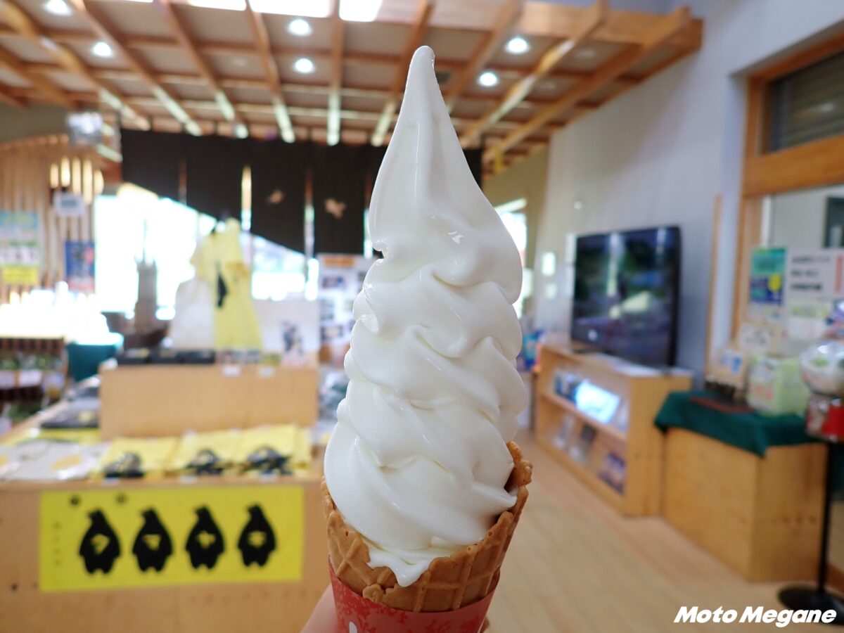 ソフトクリームにはオーガニック牛乳の味わいがしっかりと残り、さっぱりとしていながらもコクのある味となっている。口当たりもなめらかで、道の駅で食べられる牛乳ソフトの中では格別のおいしさだ。