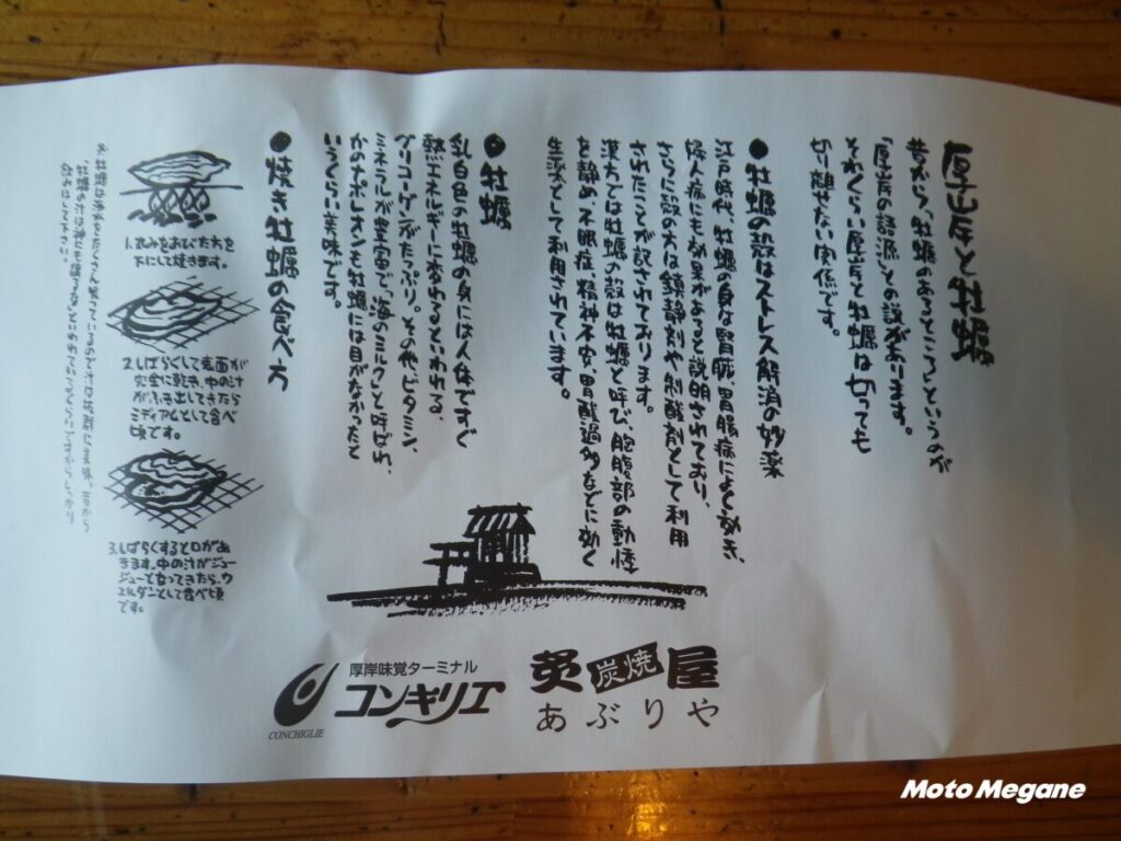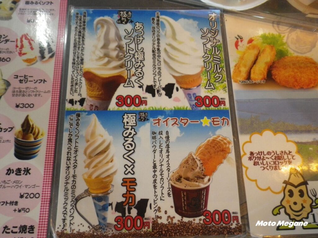 道の駅には4つの飲食店が入っており、それぞれでカキ料理を提供。1階にある「オイスターカフェ」では蒸しガキや「牡蠣の空あげ」など、厚岸産カキを使った軽食や、オリジナルのソフトクリーム「オイスター☆モカ」を販売。2階の「レストランエスカル」は、メニュー数が豊富で、和洋食のさまざまなカキ料理を味わうことができる。「炭焼炙屋」では、魚介市場で買った食材で海鮮バーベキューを楽しめ、「オイスターバールピトレスク」では、カキのピザやパスタ、生カキ3種食べ比べなどが食べられる。