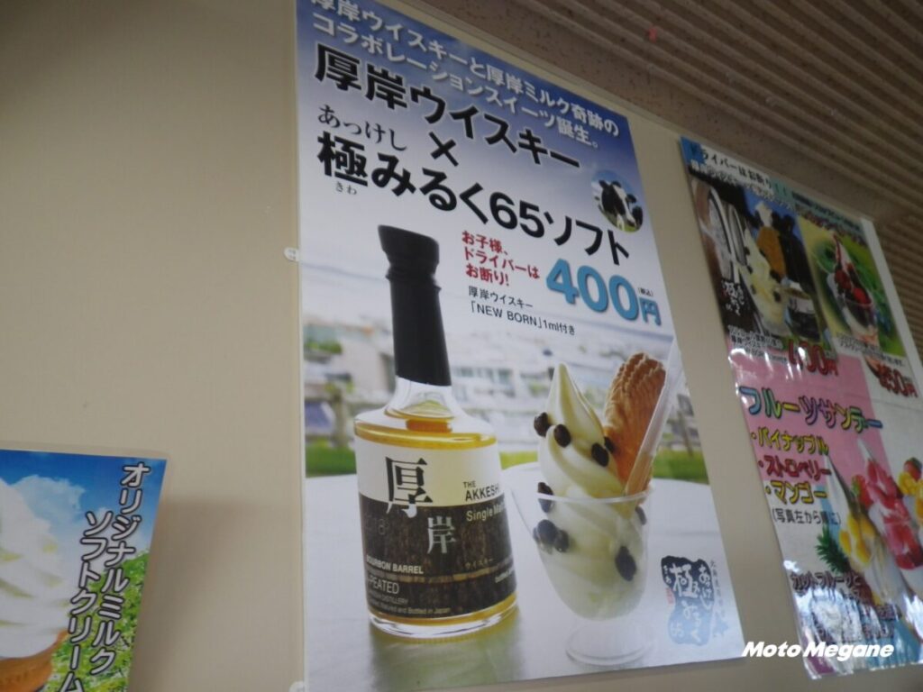 売店では、地元の特産品や道の駅オリジナルの商品を販売。カキの佃煮や牡蠣最中、カキ醤油など、カキを使ったお土産品が豊富に揃い、運がよければ厚岸産のウイスキーも買うことができる。