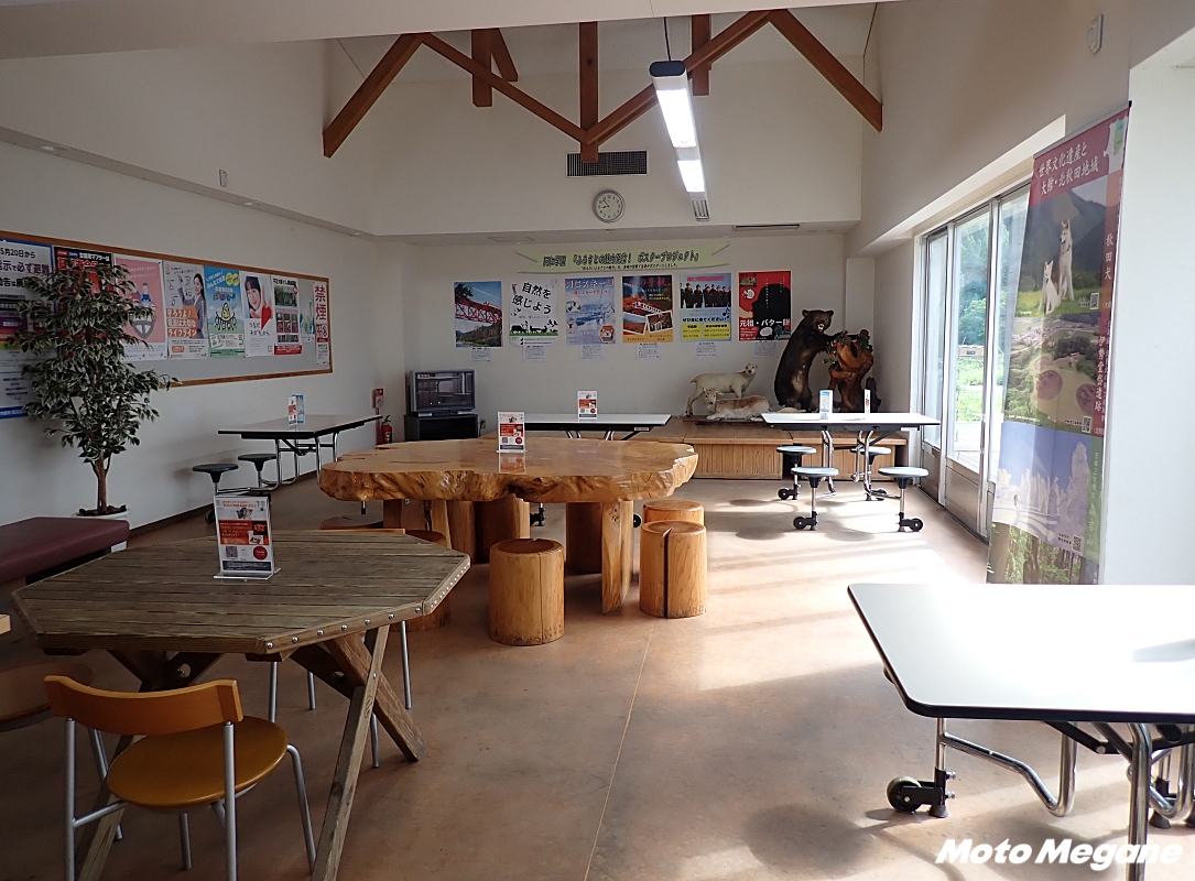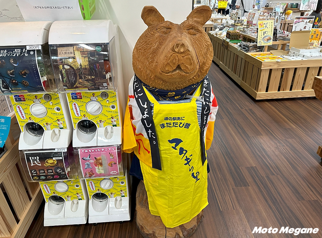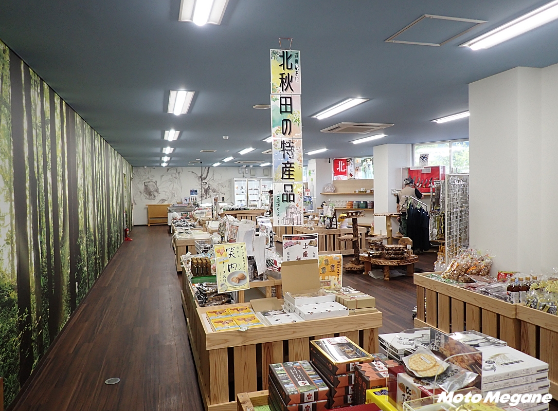道の駅の近くには、「日本の滝百選」に選ばれた名瀑・安の滝や熊牧場、マタギ資料館、打当温泉、阿仁鉱山伝承館などがあり、北秋田市内では国指定史跡の「伊勢堂岱遺跡」や世界一の大太鼓を見られる「大太鼓の館」など、立ち寄りスポットが充実しているエリアだ。R105を南に走れば田沢湖にも行くことができる。角館と鷹巣のほぼ中間地点にある道の駅は、マタギの里ならではの食事や買い物を楽しめるので、ツーリングの休憩時に最適の立ち寄りスポットとなっている。ツーリングの目的地にもおすすめだ。
