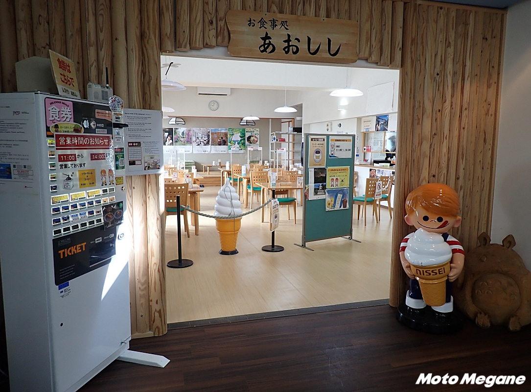 物産販売施設「またたび館」には、農産物や地場特産品などを販売する売店、マタギの里ならではの食事を楽しめるお食事処「あおしし」、休憩スペースが入っている。ソフトクリームは4月上旬~10月下旬までの期間、9:00~16:00の間に食事処で販売している。