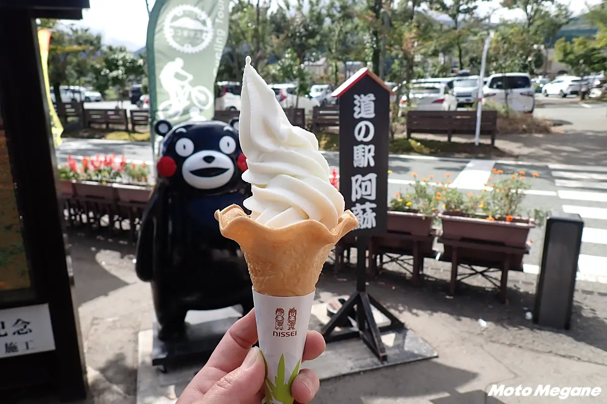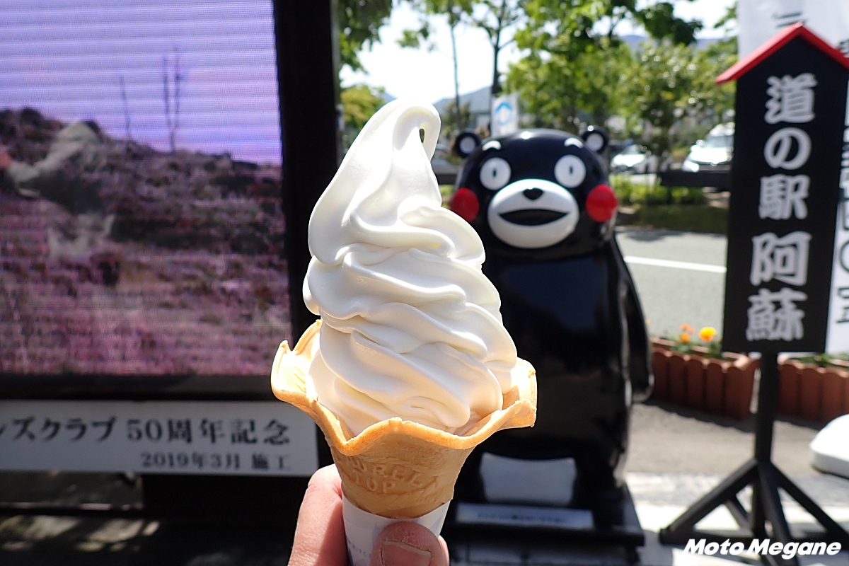 道の駅屋外にあるソフトクリーム販売所では、阿蘇市内にある阿部牧場と竹原牧場のソフトクリームを販売しており、食べ比べすることができる。わざわざ牧場まで行かずとも、2カ所の牧場ソフトを食べ比べできるのは、とてもありがたい。
