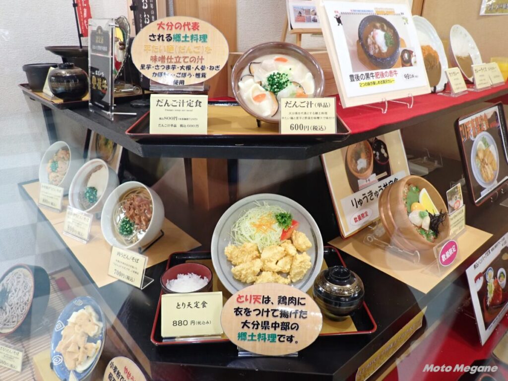 道の駅のレストランでは大分の郷土料理のとり天や、だんご汁、大分和牛の陶板焼きなどを味わえる。テラス席もあるので、天気がよい日は景色を眺めながら食事を楽しめる。