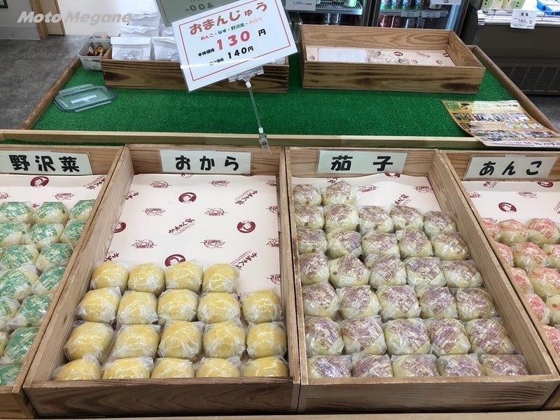 おやきは小麦粉を水で練った生地で、小豆や野菜などの具を包んで焼いた信州の郷土料理。道の駅では灰の中でじっくり焼いた「灰焼きおやき」が食べられる。地粉を使った皮の外側はカリカリで、中はもっちりとピザ生地のよう。中には具がぎっしりと入っていて、1個が手のひらサイズと大きく、食べ応えも満点。具材はたっぷりと野菜のミックス、なす、野沢菜(12~2月)があり、1個280円。予約をするとあんことおからも購入可能だ。
