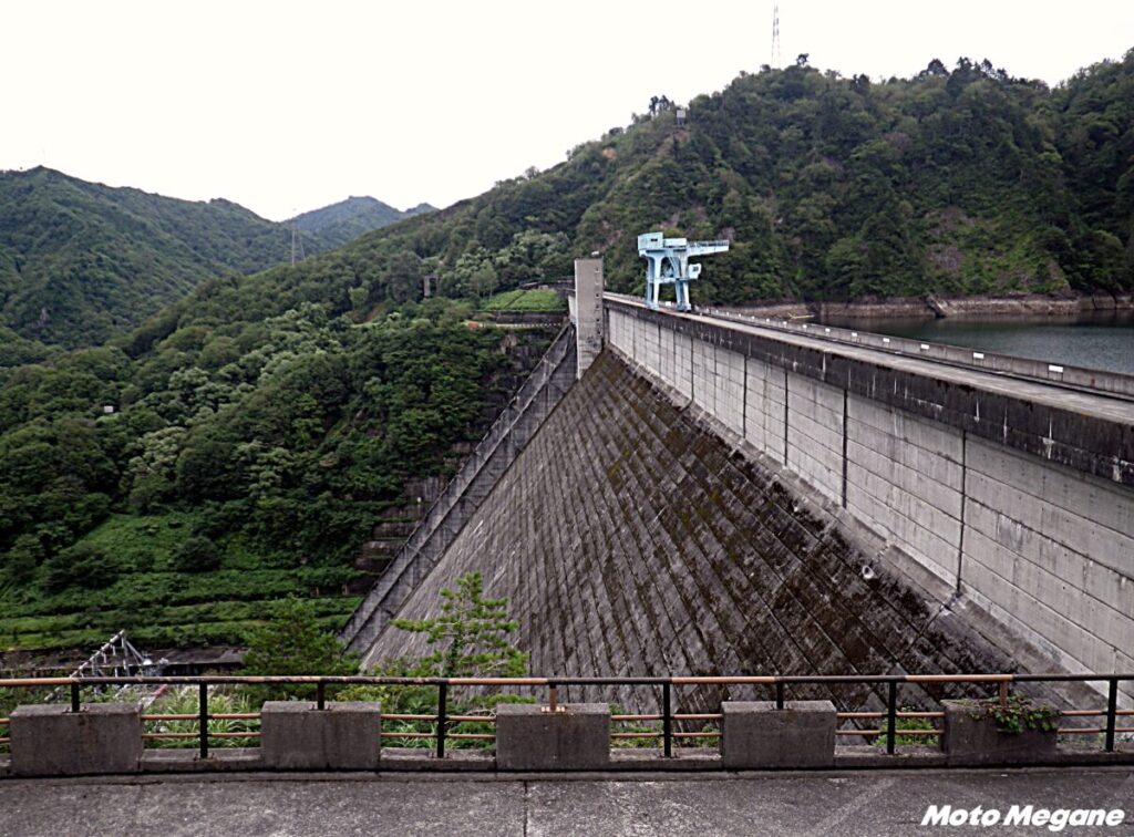 福島県只見町にある、高さ145m、長さ462mの重力式コンクリートダム。近くで見るとその大きさに圧倒される。ダム湖の田子倉湖畔では、春の新緑と残雪、10月中旬~下旬の秋の紅葉など、美しい景観を楽しめる。