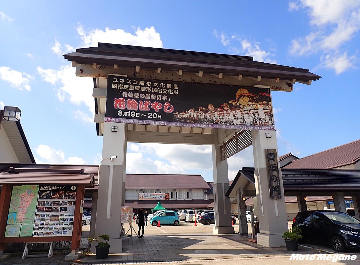 道の駅は岩手県盛岡市と青森県平川市を結ぶR282沿いに位置。ふるさと広場を囲むように、売店、直売所、飲食店舗、花輪ばやし祭り展示館などが建っている。約700種類もの商品が並ぶ売店には、しそ巻きあんずや地元銘菓など鹿角や周辺地域の特産品をはじめ、地酒やワインなどの酒類も豊富に揃う。直売所では地元産の農産物や加工品を販売。レストランでは八幡平ポークやかづの牛など、地元食材を使用した料理を味わうことができる。そばや手作りのおにぎりなどを提供するそば軽食コーナーは、カウンター席もあるので1人でも気軽に食事ができる。本格きりたんぽ鍋を楽しめるきりたんぽ館では、手作りのくるみ味噌を塗って焼いた「みそ付けたんぽ」も人気だ。祭り展示館では、ユネスコ無形文化財に登録されている「花輪ばやし」の屋台を展示。入館料大人500円で見学できる。