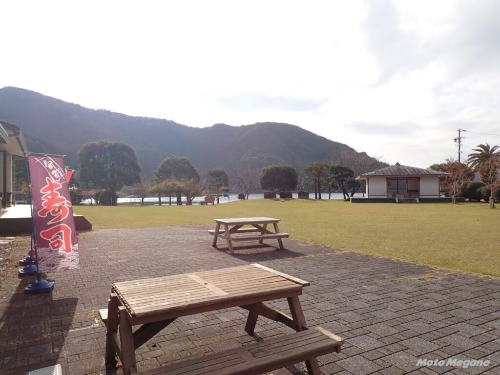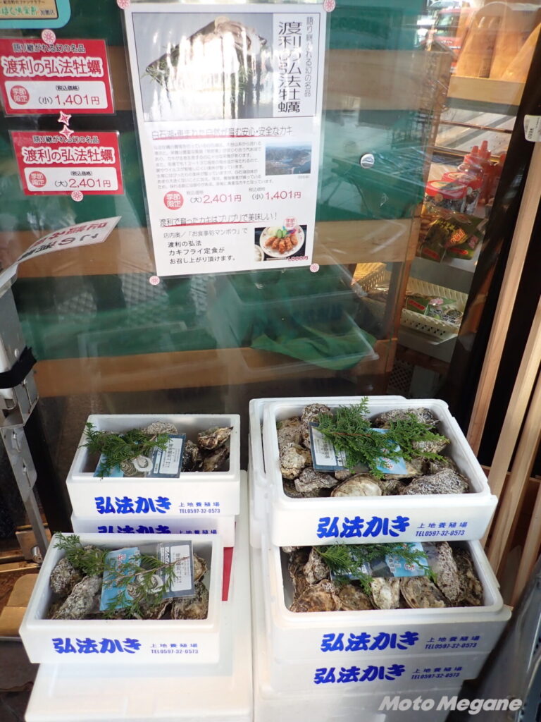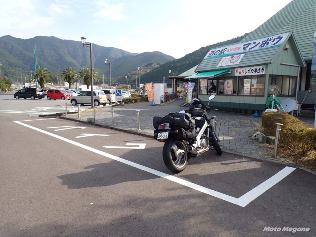 道の駅があるのはR42とR260が交わる場所でもあり、伊勢方面、志摩方面、和歌山方面どこから来ても休憩するのにちょうどよく、多くのライダーが立ち寄るスポットだ。バイク駐輪場はマンボウ屋台の正面と屋根付き駐輪場の2ヶ所が用意されている。伊勢方面からのアクセスは、内陸を走るR42か、志摩と紀伊長島を結ぶR260を利用する。R260はリアス式海岸に沿って通っていて、新道はトンネルが多く走りやすいが少し時間がかかる。