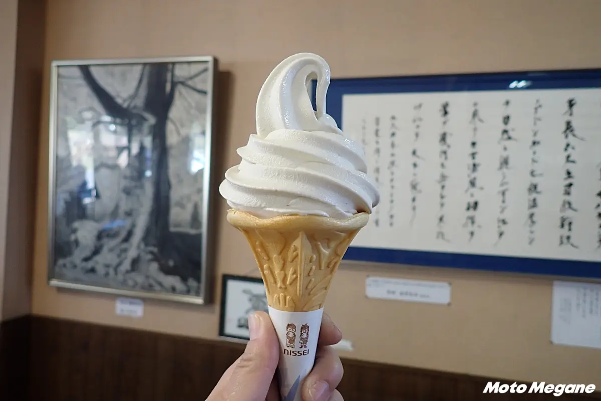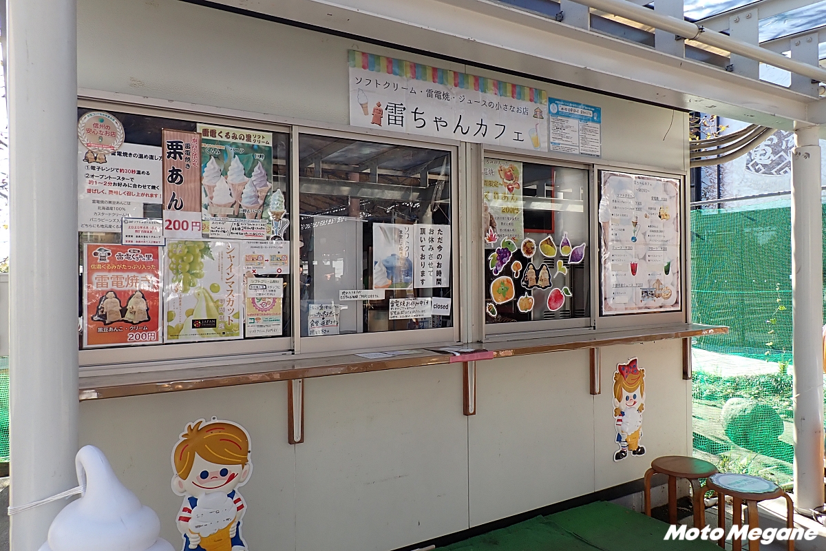ソフトクリームは屋外にある「雷ちゃんカフェ」と食事処「湯の丸」どちらでも購入できる。