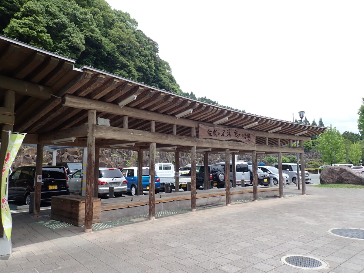 温泉施設入り口には無料の足湯が設置されており、気軽に温泉を楽しむことができる。足湯の周りには足裏マッサージのイボイボなどが用意されているので、運転の疲れをとるために試してみてはいかがだろうか。