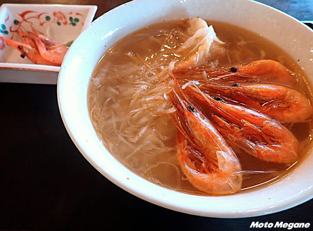 日帰り温泉施設と宿泊施設を併設する道の駅。オススメは、宿泊施設内レストランで食べられる「えび塩ラーメン」。えびの殻から作った特製のえび粉とえび油の入ったスープ、道産小麦の春よ恋の中細の縮れ麺は小麦の味がしっかりと。えびの唐揚げと、揚げえびタコ餃子がトッピングされ、さらに生の甘海老がついてくる。えび好きにはたまらないラーメンだ。