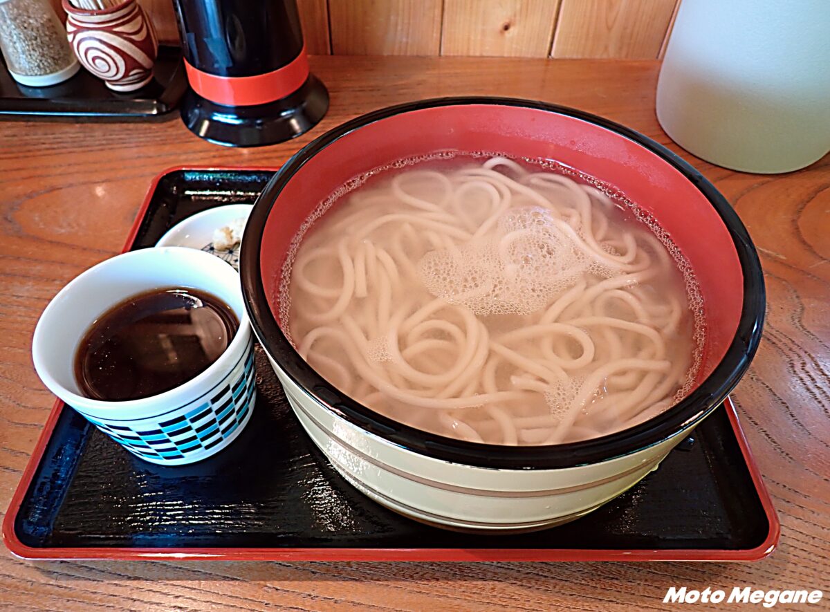 古くから地域で食べられてきた郷土料理。茹でたうどんは、たらいに入れられて出てくる。細めのうどんは、喉越しよくもちもちとした食感。つゆには大豆、干し椎茸、いりこでとった出汁を使うのが特徴で、すこし甘め。夏はキリッと冷やしたもの、冬は熱々のたらいうどんをいただける。数量限定品。