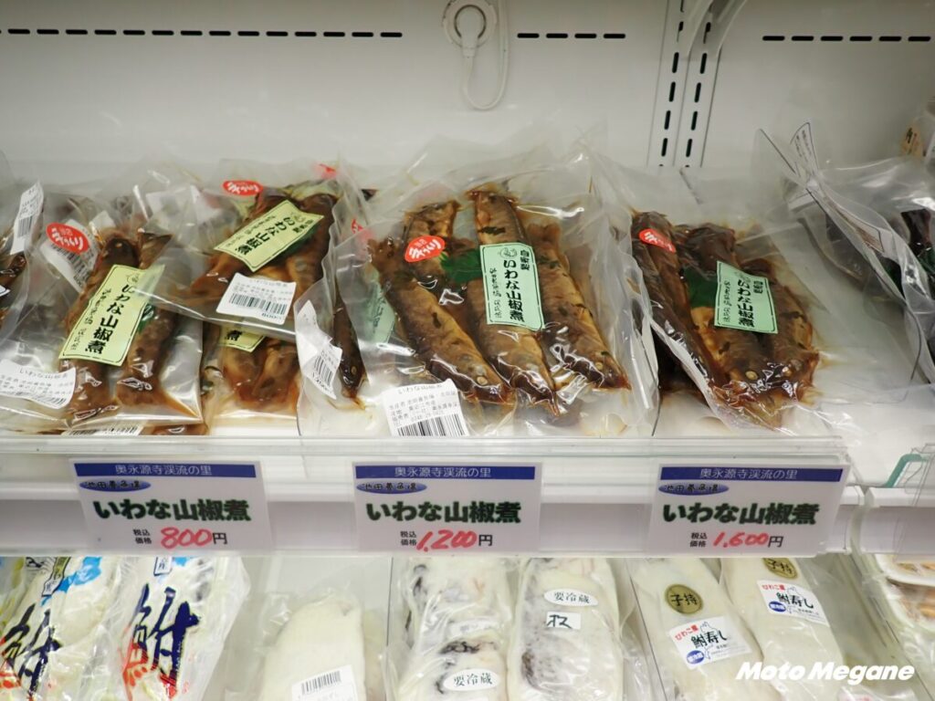 奥永源寺の特産品。道の駅ではさまざまな料理でイワナを味わえる。「ふる里まなびや」では、ふわふわなイワナを堪能できる揚げたての「岩魚天丼」やイワナの塩焼きを提供。「うをまつ」では、炭火でじっくりと焼き上げた「岩魚田楽」を堪能できる。売店ではイワナの養魚場お手製のイワナの山椒煮を販売、お土産にもピッタリだ。