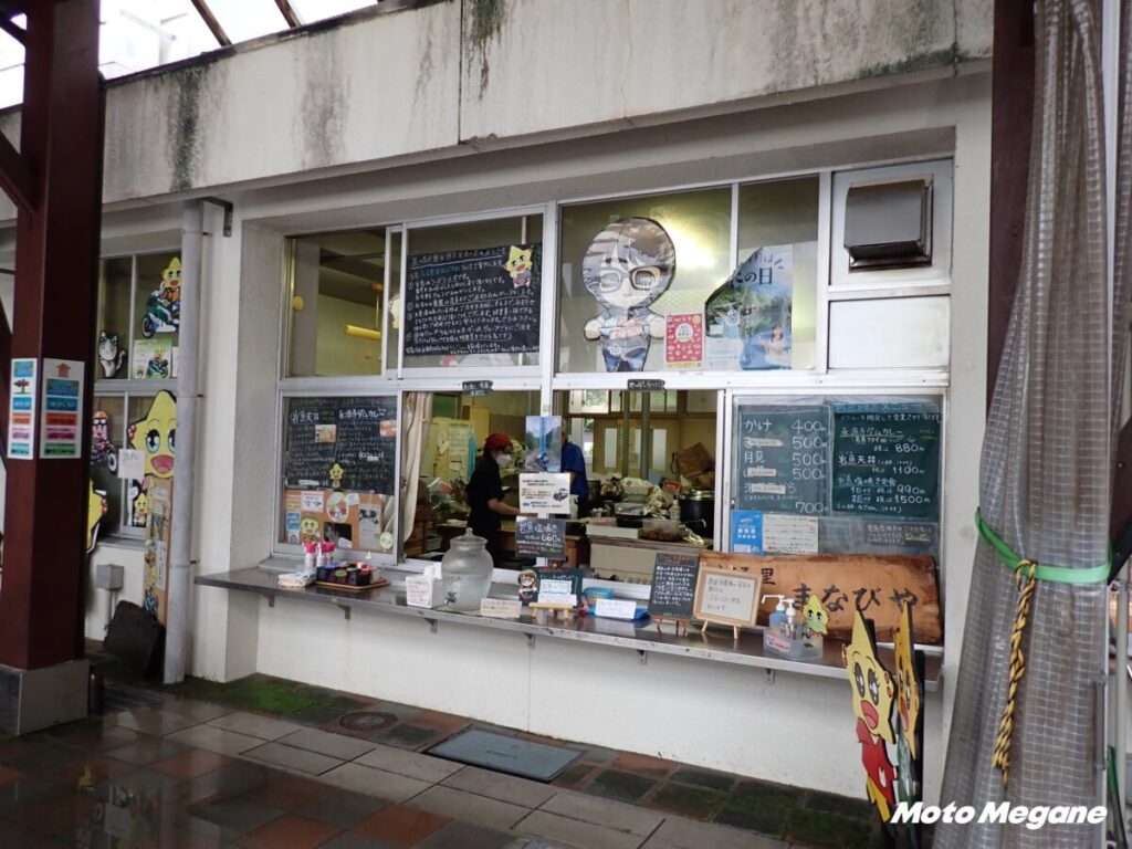 道の駅は、自然豊かな山間にある廃校となった旧政所中学校の校舎を活用。校舎や体育館がそのままの姿で利用されている。建物内には売店、食事処、展示コーナーなどが入っている。
