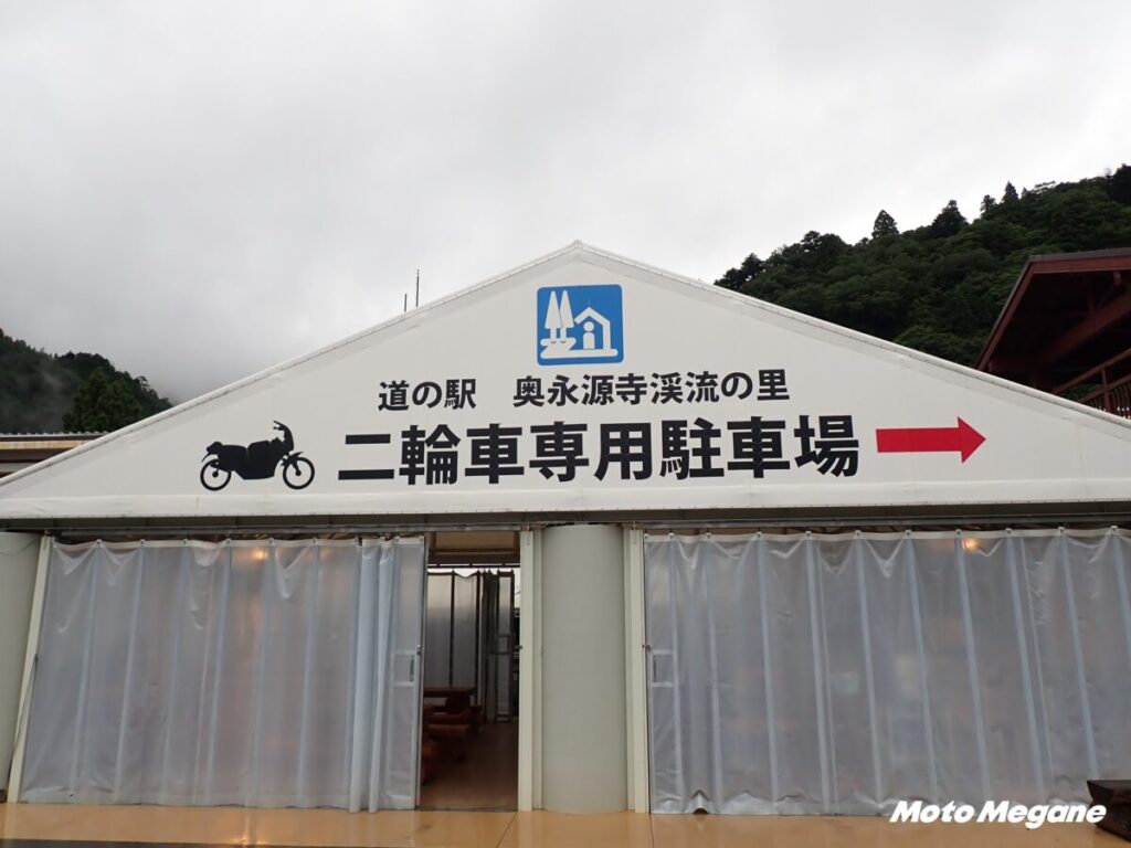 道の駅が面するR421は愛知川と並行しており、川や永源寺ダムなどの風景を見ながら走れるルート。永源寺周辺は、秋は紅葉の名所としても知られる人気のスポットでもある。地元ならではのグルメを味わえるほか、広々とした二輪車専用駐車場が完備されているので、ツーリングの立ち寄りスポットに最適の道の駅だ。