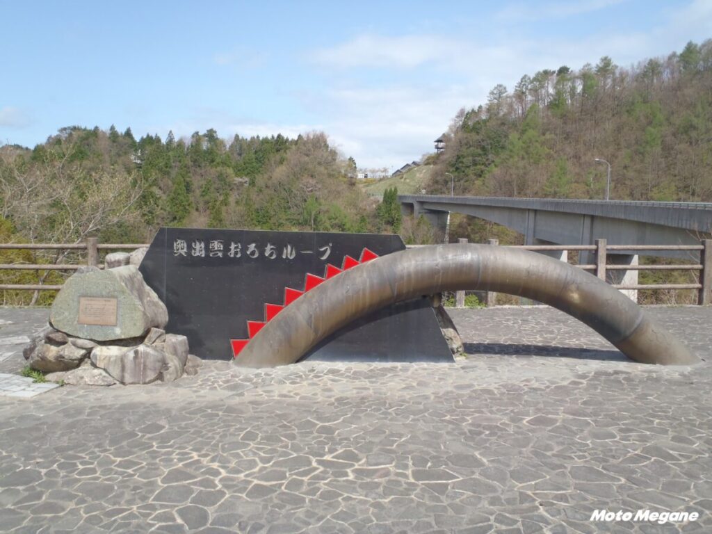国道314号の坂根~三井野原区間にある、高低差167mを一気に上がるために造られた橋。大小11の橋と3つのトンネルで繋ぐ日本最大規模の二重ループ方式の道路。ループ全体が二重にとぐろを巻いており、橋の名前はヤマタノオロチから名付けられた。大きすぎて展望台からは一望することができない。