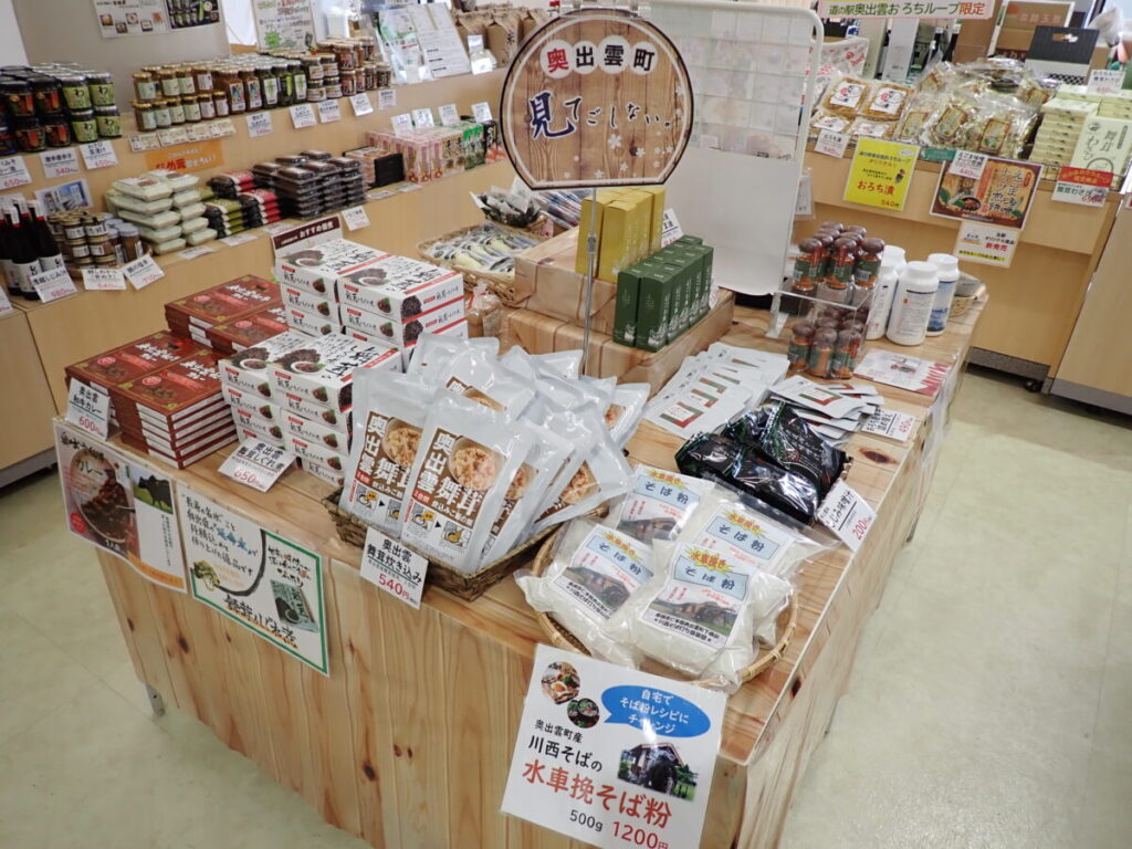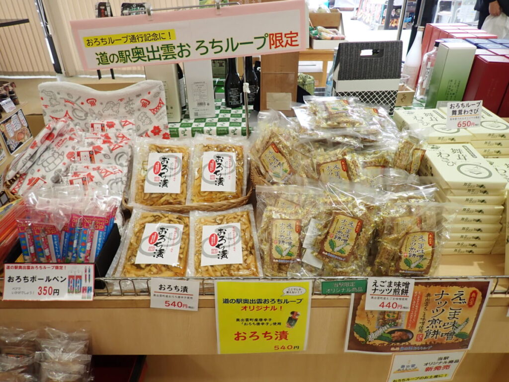 道の駅はその二重ループ式道路、通称「おろちループ」の頂上の標高675mの場所にある。道の駅内には特産品売り場と軽食コーナーがあり、特産品コーナーでは奥出雲の特産品の菓子類や、醤油・味噌などの調味料、和鉄包丁や、県内のお土産品などを取りそろえる。駅オリジナルの「舞茸わさび」や「おろちループせんべい」もお土産に人気がある。軽食コーナーでは駅オリジナルの「のどぐろラーメン」や十割割子そばが味わえ、奥出雲の味を満喫できる。展望台からの眺めが絶景で、山肌を走る木次線や赤いアーチの三井野大橋、四季折々の山の風景を見ることができ、なかでも新緑や紅葉の時期がおすすめだ。
