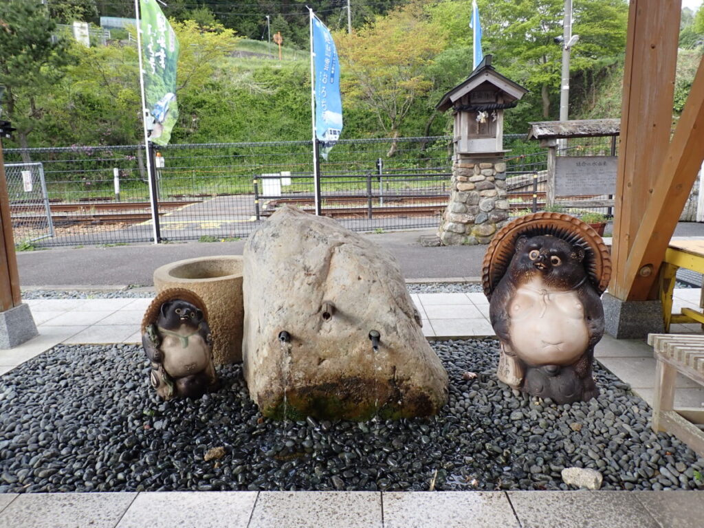 冬暖かく、夏には冷たい湧き水。言い伝えでは、寿命100年を越えたと思われえる古狸が好み飲用したことから里人も長寿の霊水として飲用を始め、その後に「延命の水」と名づけられたと言われている。島根県名水百選のひとつで、出雲坂根駅構内に泉源があり無料で汲むことができる。