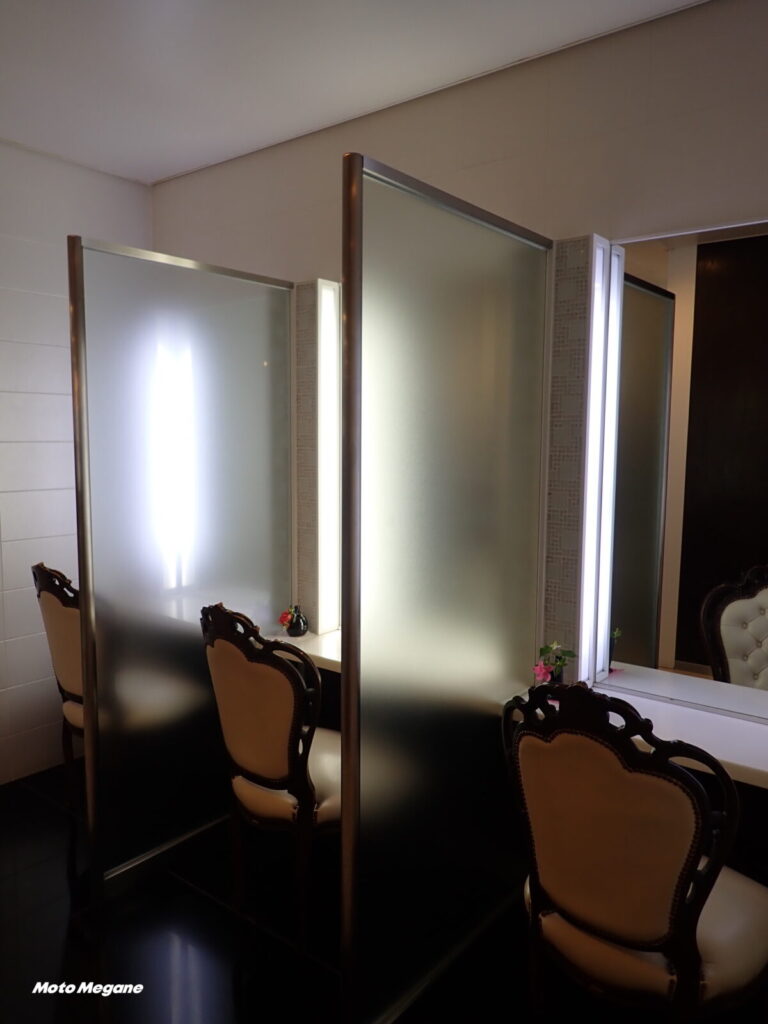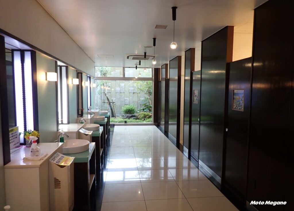 工事費1億円をかけた超豪華なトイレ。個室は広々、便座は自動開閉のタイプで、個室内それぞれに絵が飾られ、窓の外には滝や庭園を見られるなどゴージャスな造り。女性用にはイス付きのパウダールームも完備するなど、あらゆる箇所が豪華なトイレだ。