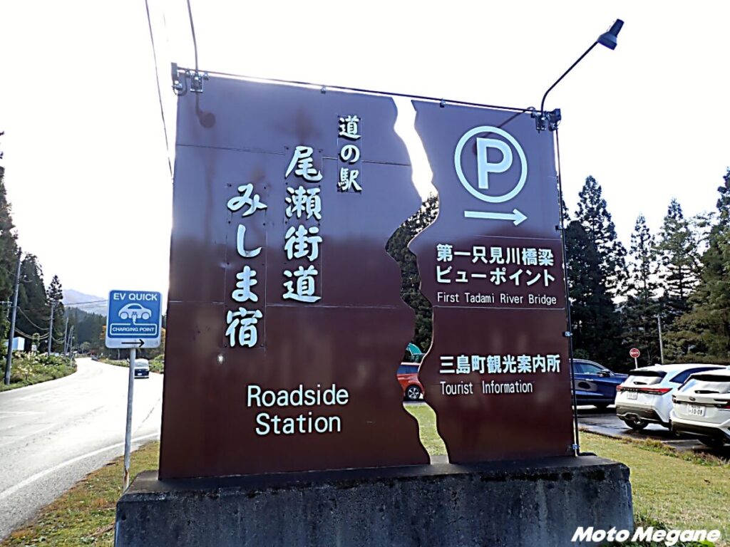 『尾瀬街道みしま宿』は只見川沿いを通るR252に面しており、アクセスは抜群。自然豊かな山間の地域にあり、目の前には只見川が流れ、駐車場からは会津の山々を眺められる景観の良い道の駅だ。バイク用の駐輪場は設置なし。