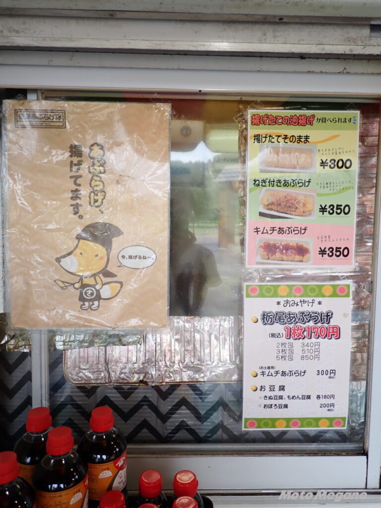 レストランでは栃尾あぶらげを使った食事や、ラーメンカレーなど定番のメニューを提供する。屋外の売店では揚げたての「栃尾あぶらげ」を提供、休日には列ができることも。