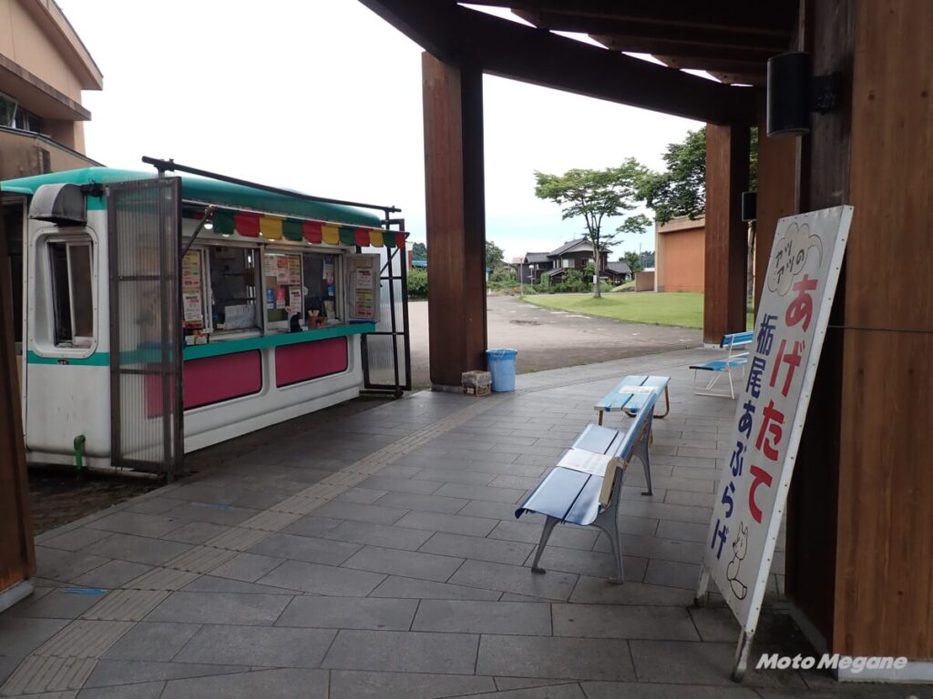 駐車場には、バイク駐輪場が広いスペースで用意されている。道の駅のあるR290は村上と魚沼市小出を結ぶ山間を通るルートで、新潟の郷土色豊かな風景を眺めながら走ることができるツーリングコース。地元でしか味わえない名物グルメを楽しめる道の駅は、ツーリングの目的地にもピッタリの場所だ。