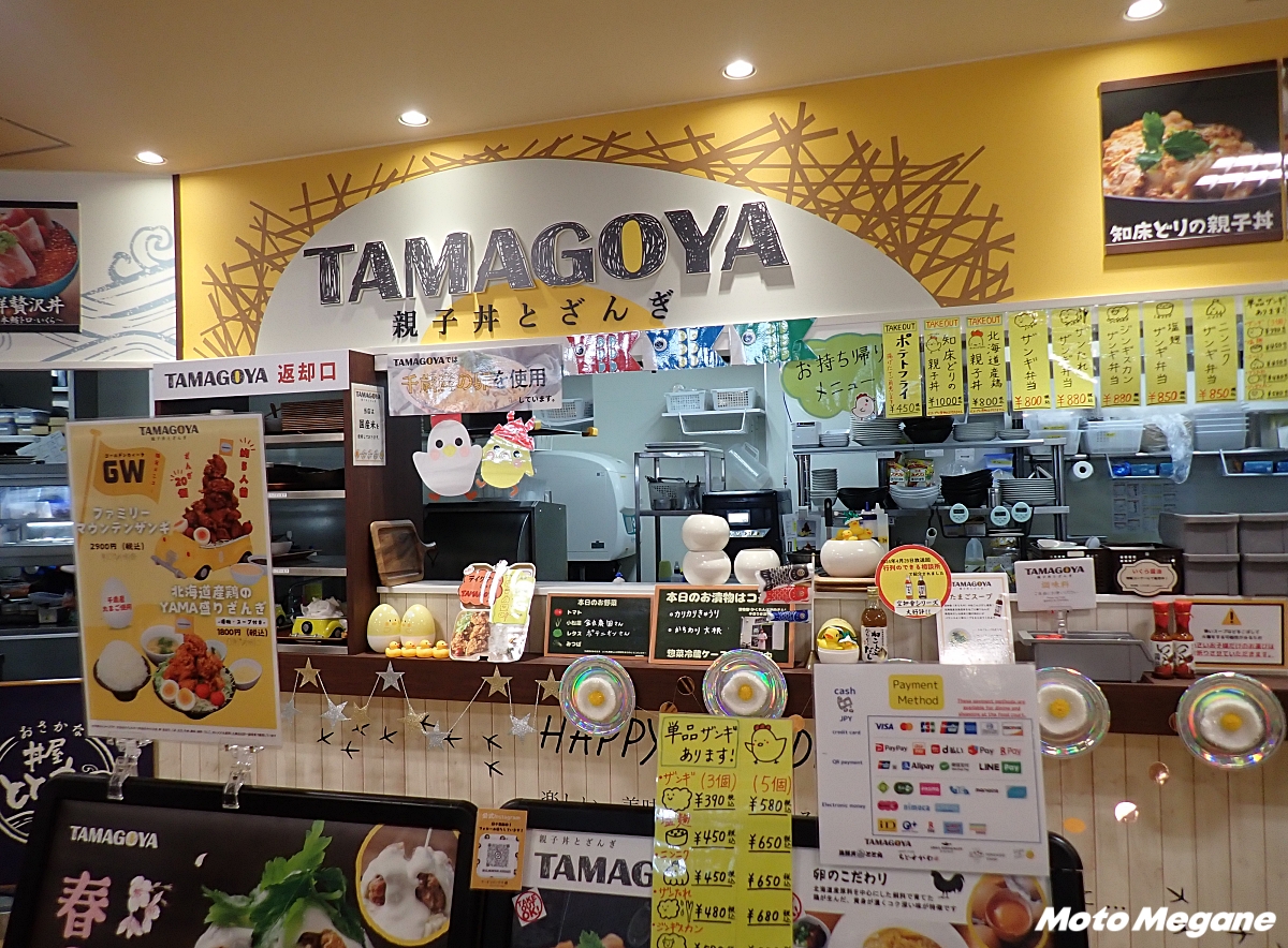 施設はフードコートとレストラン、物販エリアを備える。フードコートには5つの飲食店舗が並び、さまざまなグルメを満喫できる。サーモンをはじめとした海鮮を味わえる海鮮丼店、親子丼とザンギの店、海鮮や鮭、トウモロコシを使ったラーメン店、イチゴを使ったソフトクリームやスイーツを販売するスイーツ店、メロパンが人気のベーカリーを多彩な食事が魅力だ。レストランではステーキや魚介類を使った料理、パスタやカレーなど、バラエティ豊かメニューが揃っている。フードコートの横には、北海道産の食材にこだわったおにぎり専門店もあり、釜炊きご飯で握るバリエーション豊富なおにぎりを購入できる。店舗によっては3~4人で食べるようなジャンボサイズのメニューも用意されており、その量と見た目の大きさには驚かされること間違いなし。
