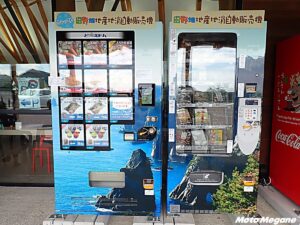 『道の駅たのはた 思惟の風』は、岩手県下閉伊郡田野畑村にあるR45に面した道の駅で、三陸自動車道・田野畑南ICから北へ5分の場所とアクセスは抜群。以前は思惟大橋のたもとにあったが、現在の場所に移転。2021年4月にリニューアルオープンした。建物は新築され、広くきれいな建物に。お手洗いもピカピカだ。駐車場にはバイク用のスペースも用意されている。小型車駐車場の一角には望遠鏡が設置されているので、興味があれば覗いてみても。