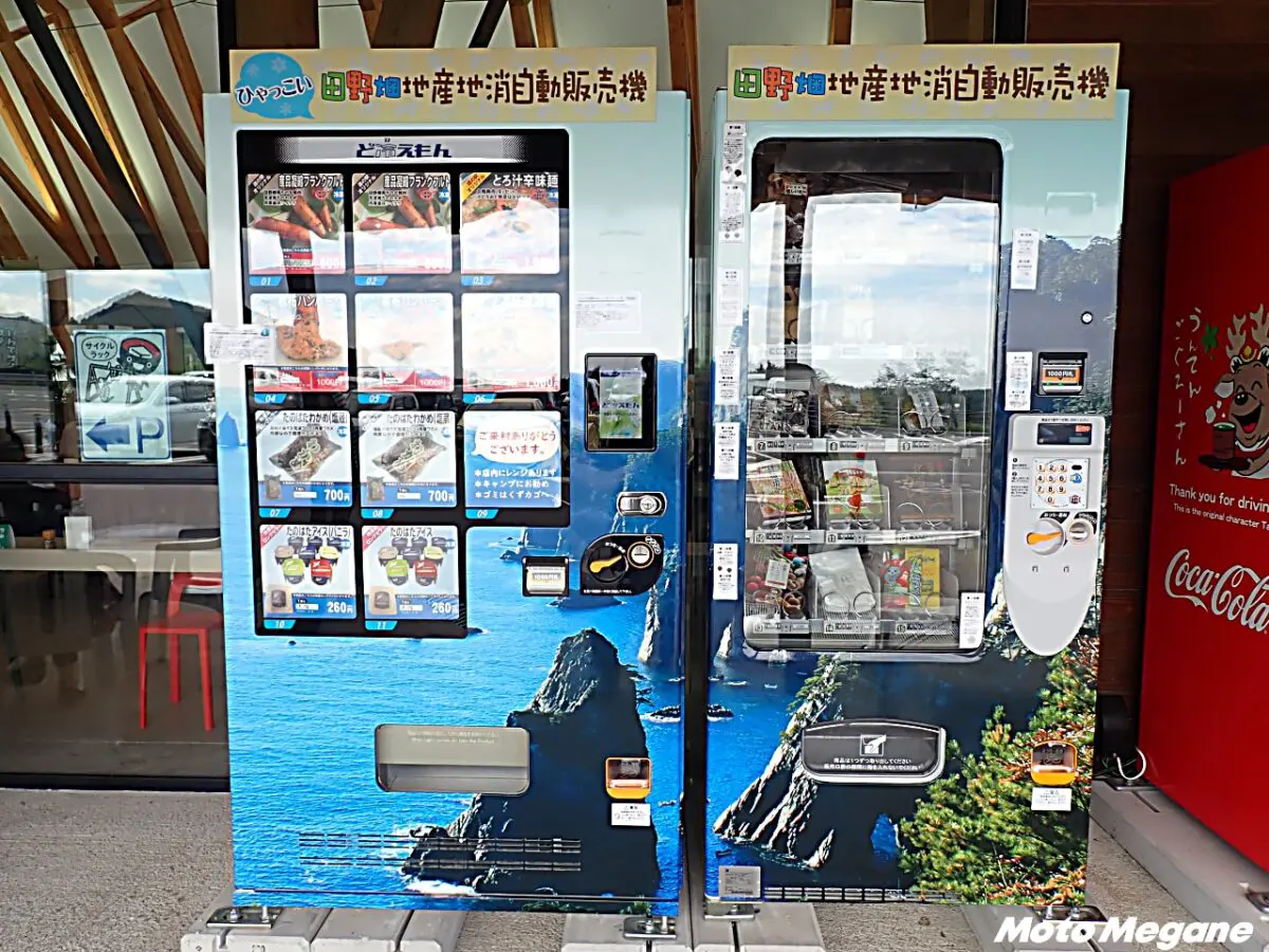 天井が高く広々とした館内には、物産・産直コーナー、食堂が入り、2階部分には休憩スペースが設置され、購入した商品などはここで食べることができる。屋外ではファストフードの売店が営業。特産品を販売する自動販売機も設置されており、24時間購入が可能だ。