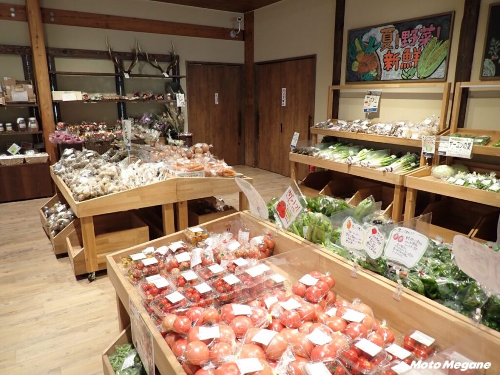 売店では、地場農産物や特産品、民芸品など多彩な品を販売。地酒は豊富な品揃えで、遠野で造られる「どぶろく」も販売。また、遠野は日本有数のホップの生産地で、地場のホップを使った地ビールやホップソーダなども数多く取り揃えている。