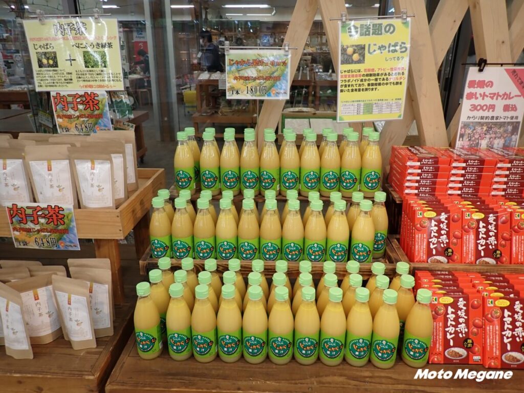 町内産限定の農産物を販売する直売所には、内子の旬の野菜や果物、加工品が数多く並ぶ。中でも、本場ドイツ仕込みの技と内子町産の豚肉で作ったオリジナルソーセージやハムが人気で、特産のじゃばらを使った商品は品数が豊富だ。