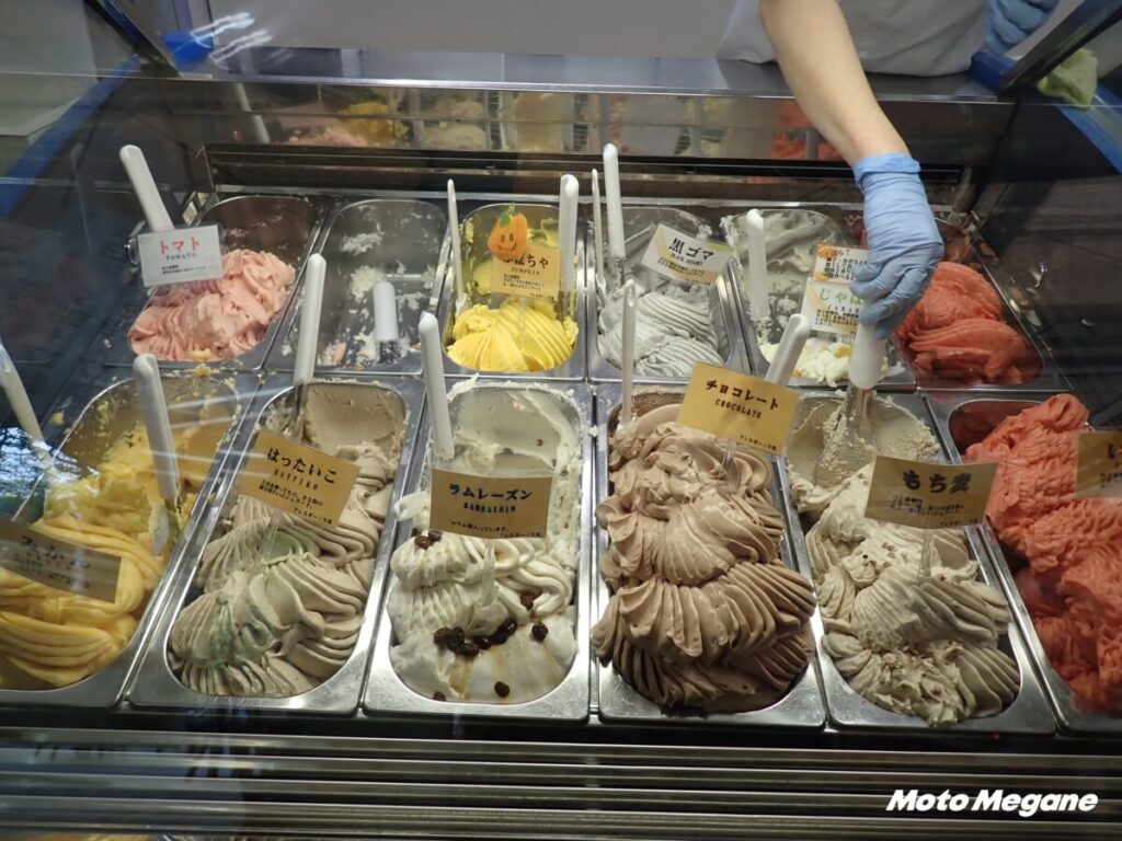 シャーベット工房では、内子産の旬の果物や野菜で作ったジェラートを販売。トマト、じゃばら、もち麦など約20種類あり、いろいろな味を楽しめる。