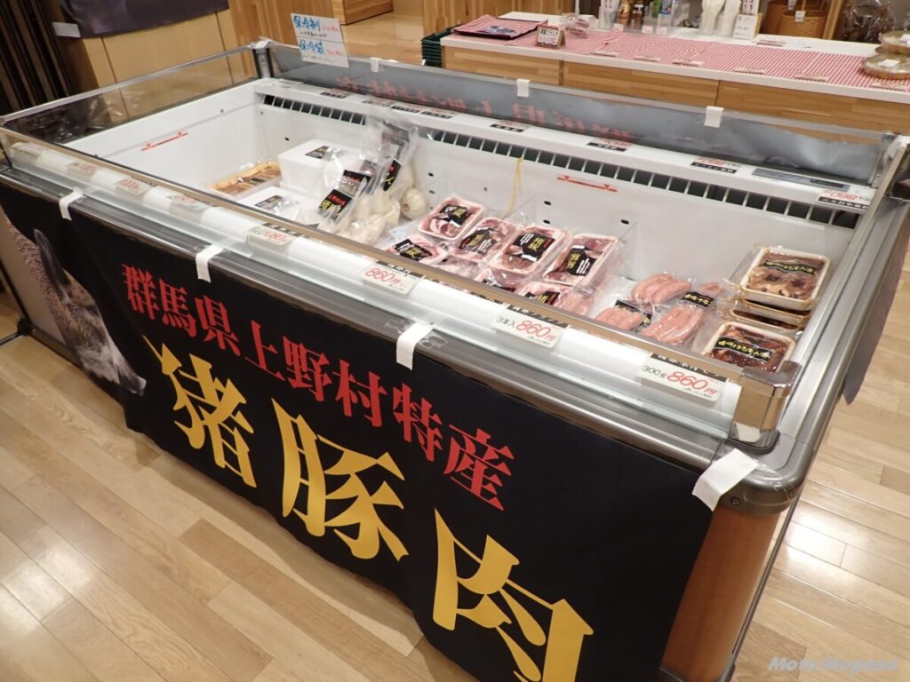 約50年前から飼育が始まった上野村名物のブランド肉で、イノシシの父親とブタの母親を掛け合わせた子供のこと。赤身肉は風味豊かな味わいで、脂身は甘みとコクがある。売店では、スライス肉のほか餃子やフランクなどの加工品を販売し、レストランでは各種いのぶた料理が食べられる。