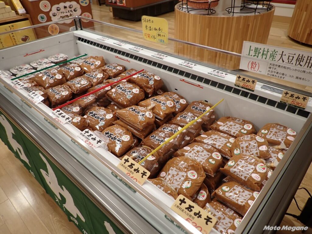 大豆、大麦、塩のみで、天然醸造された麦味噌。米が作れなかった上野村では昔は麦を主食としていたので、保存食として麦味噌が造られていた。数量限定の上野村産大豆使用のものと、国内産大豆で作られた2種類の十石みそを販売する。