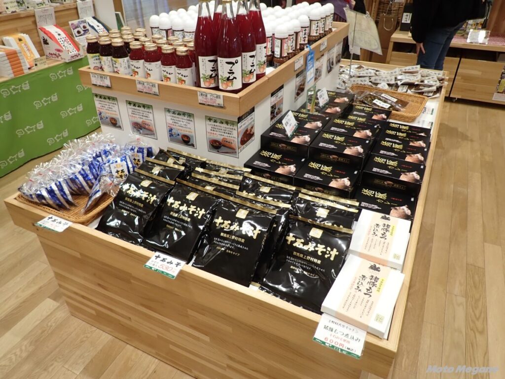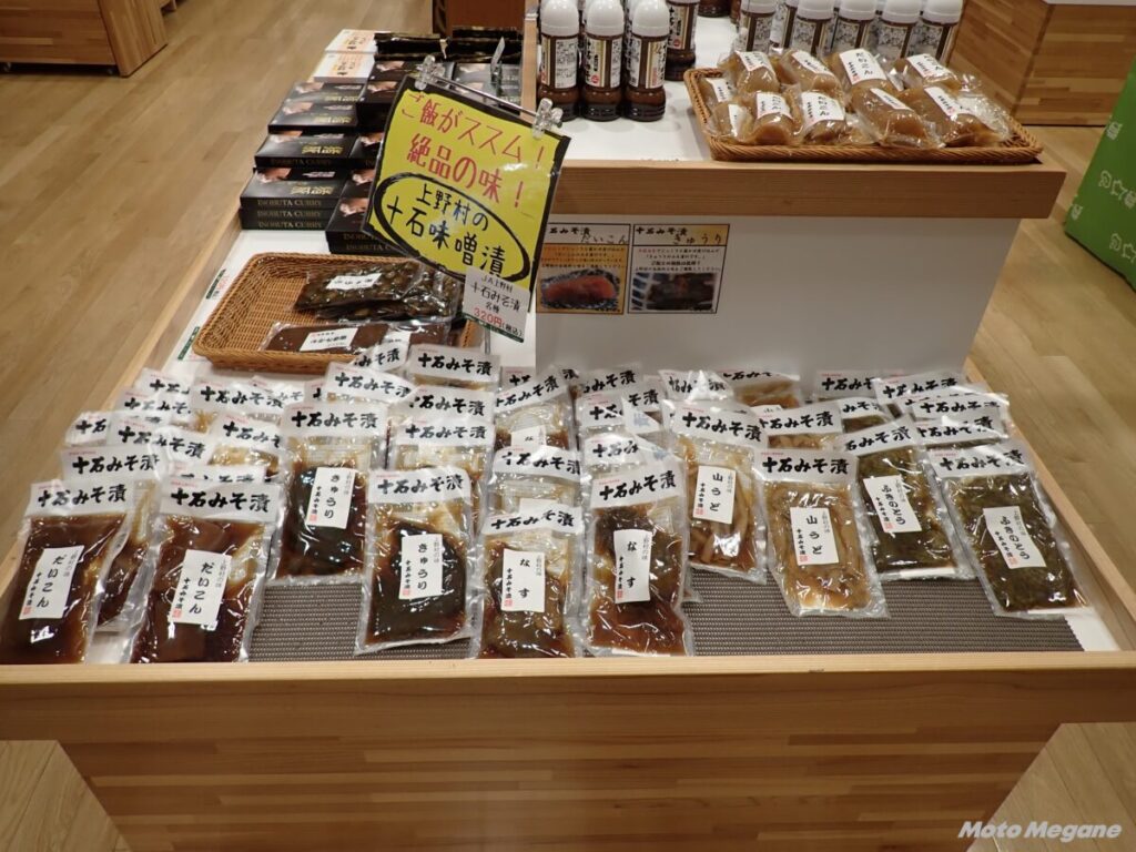 レストランでは、村の特産品である「いのぶた」や「十石みそ」を使った料理や、郷土料理の「つとっこ」を味わえ、テイクアウトコーナーでは十石みそソフトクリーム(冬期販売休止)などを販売。上野村の食を満喫できる。お土産ショップでは上野村の農産物や特産品、併設する菓子工房のスイーツや焼き立てパンを販売。十石みそ漬けやいのぶた加工品などお土産向きの商品も多く揃う。