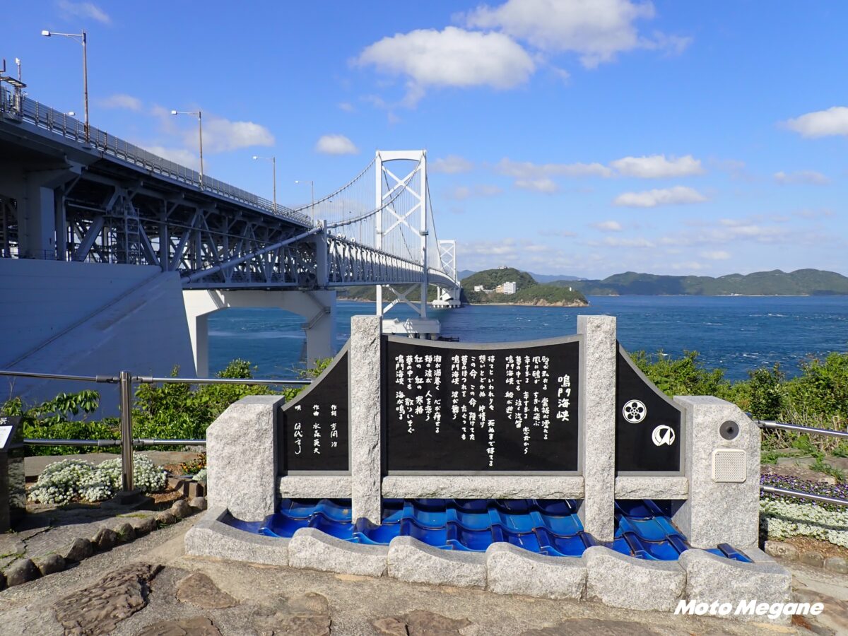 道の駅敷地内には遊歩道が整備され、岬まで歩いて行くことができる。階段を降りていけばすぐ目の前に鳴門海峡を見ることができ、潮の流れの速さを実感できる。真下から見る大鳴門橋は圧巻の姿。大鳴門橋内にある展望台は現在工事中のため立ち入りできなくなっている。