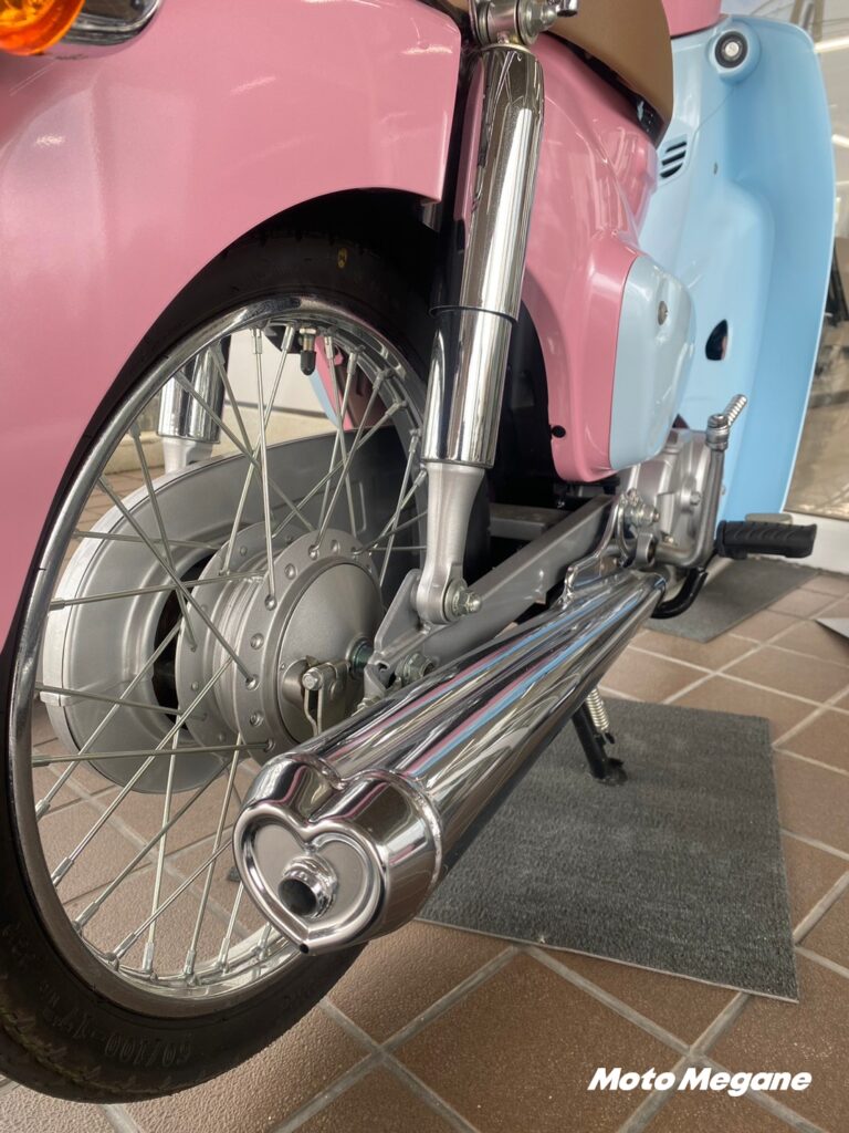 ハートのCubこちらも女性社員さんのデザイン。「こんなバイクあったら乗りたい」と可愛さにこだわったそうです。2019年のモーターサイクルショーで話題になった1台ですね。あたし?もちろん2台とも乗ってみたいです!