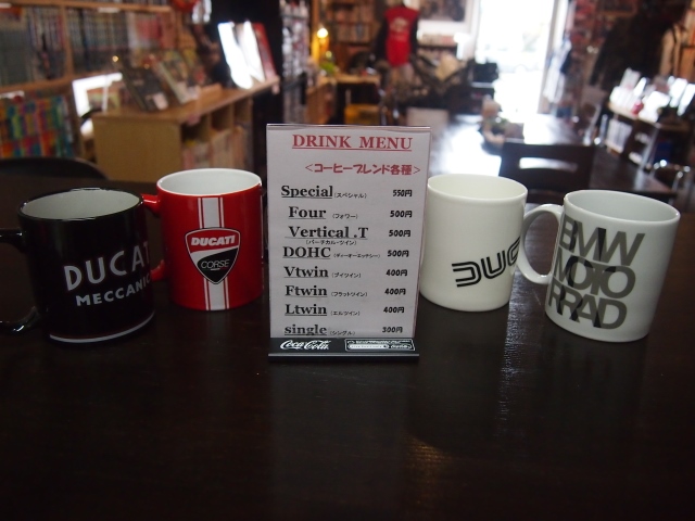 ・各種マグカップで提供するオートバイのエンジンをイメージしたコーヒーブレンド
