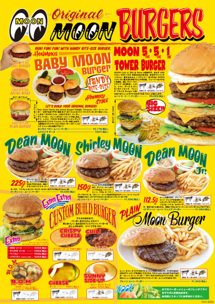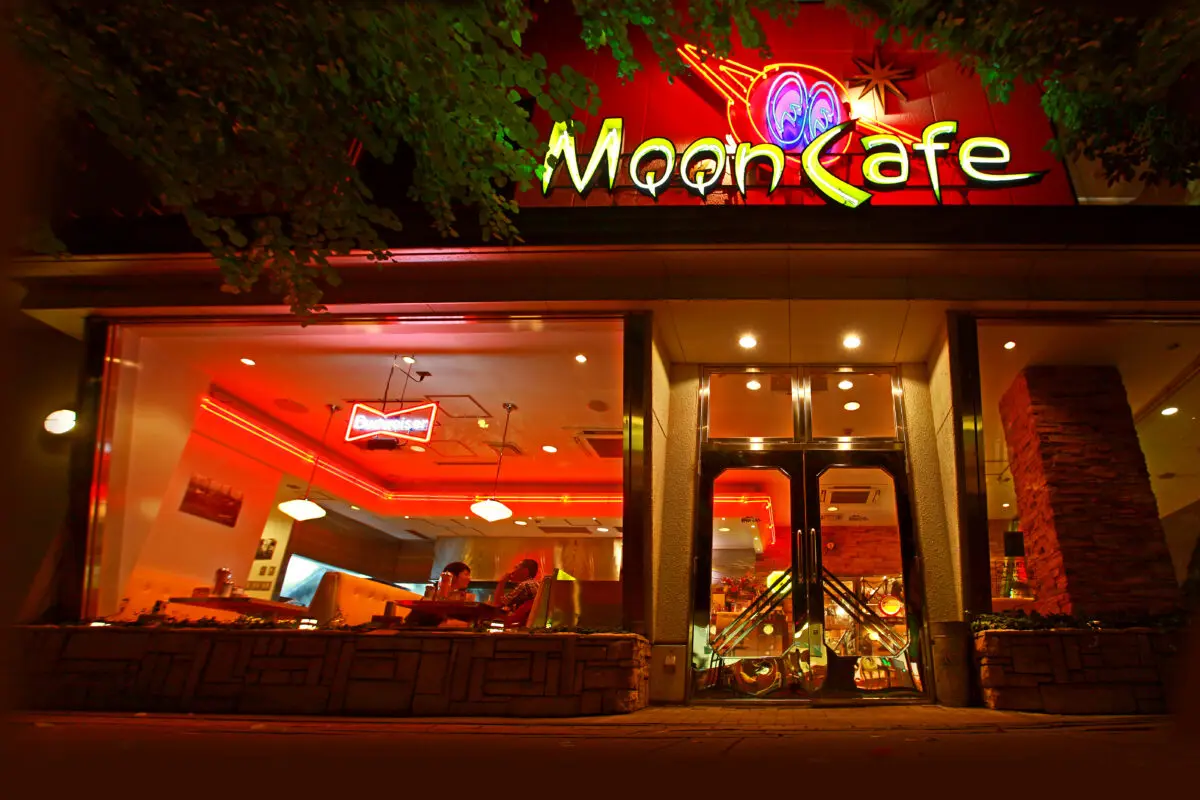 元々横浜元町にあった Auto parts & Motorcycle Parts Shop MOONEYES Area-1 を1991年3月に横浜の本牧に移転しました。元町では建物2階のSHOPだった為、現代表・Shige菅沼が本牧では路面店でなければ出来ないFood Businessをやりたいと思い、1991年5月にMOON Cafeをオープン。車で来れて、自分が食べたい物を食べれるお店が欲しかったということで、当時では珍しかった、ネイティブの方も納得できるアメリカの味をホームメイドで提供するアメリカンスタイルのカーフィーショップをスタートさせました。