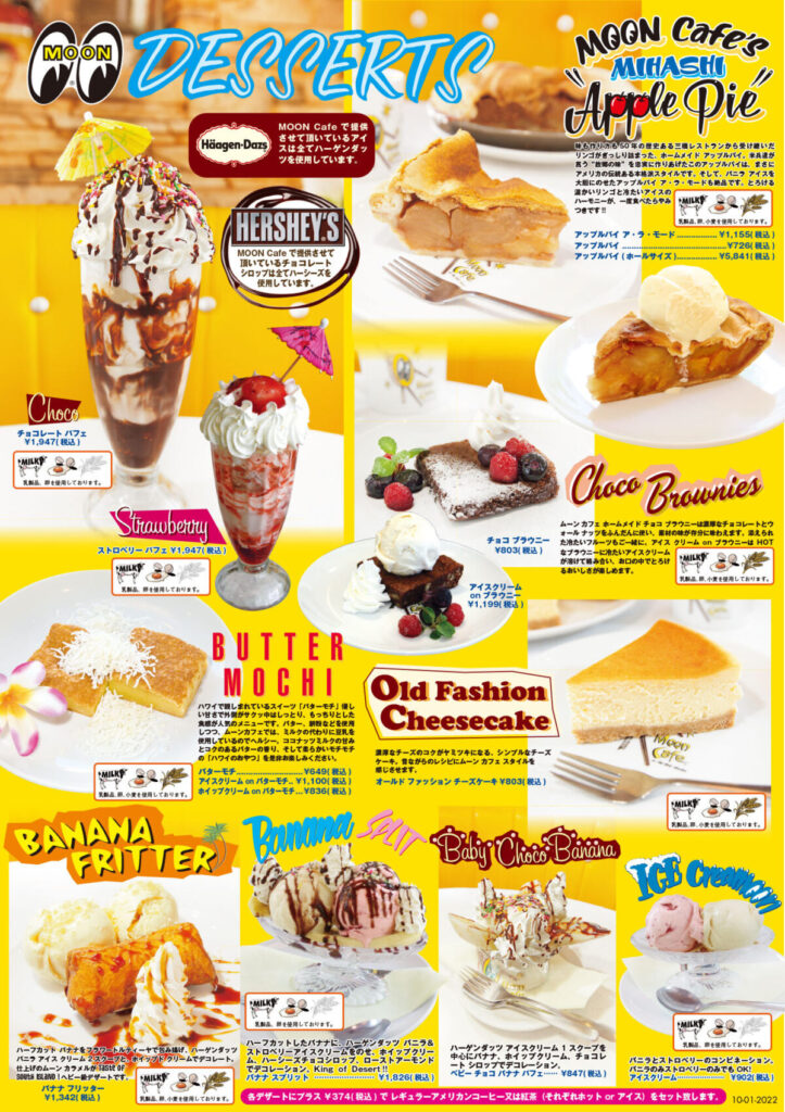 天に向けて斜めに張り出す大きなウィンドウ、店内外にネオンサインや積み上げた石壁など、まるで 60s USA Coffee Shop に来たかのような MOON Cafe。ハンバーガーを始めとする USA Food、Hawaiian Food、Mexican Food、Desserts & Drink を味わえるのは ムーンカフェだけです。2箇所に構えられたU字型ソファーとボックスシートにカウンター、そしてテラス席のみDog Parkingもご用意しており、ペットと一緒にお食事を楽しめます。豊富なレギュラーメニューも魅力的ですが、マンスリー スペシャルとしてその月限定のプレートメニュー、ハンバーガーメニューもございます。Cruise Night のスポットとして、また横浜のデートスポットとしてもご利用できるカフェレストランです。