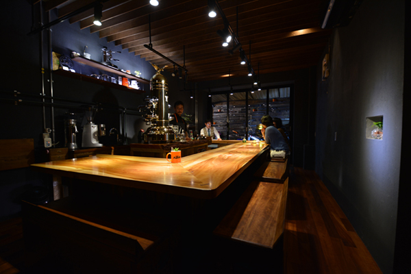 当店はケニア豆を深く焙煎したネルドリップ珈琲を専門店です。一杯一杯丁寧に抽出したコーヒーをお出しするため、コの字型のカウンターのみとなっています。