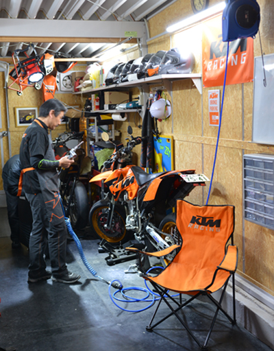 お店に付帯した「ガレージ」も特徴です。当店をご利用いただいたお客様であれば、一声かけていただけたらご利用いただけます。その際、使用後の後片付け等はしっかりとお願いします。