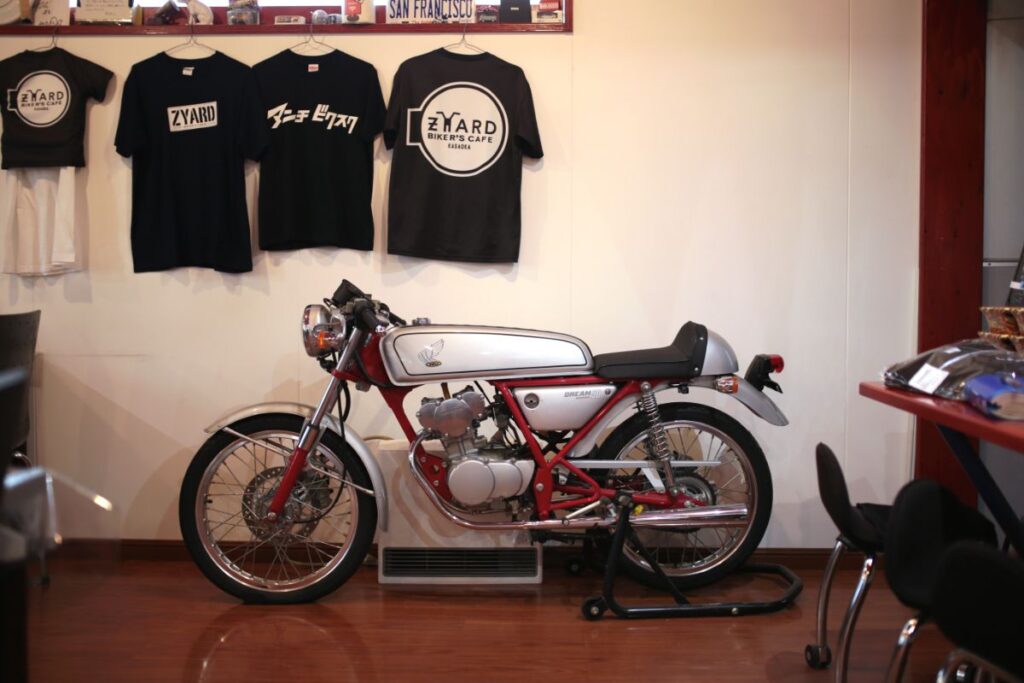 一番の特徴は『自分のバイク観ながら珈琲を飲む』こと。さらに『バイクいじりスペース(100㎡程度の屋根付き)』を設けて、カフェに来た人に開放していることです。バイクをいじる場所があることで、お客様同士のコミュニティが生まれることも多々あります。置いてある工具も自由に使って良いことになっているので、自宅でメンテナンスする場所がないとか工具が揃ってないという場合でも、カフェに来てコーヒーを飲みつつバイクをいじれるわけです。