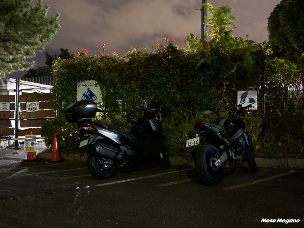 バイク用の駐輪場は無料で比較的広いのですが、横浜、川崎あたりのライダーは夜ツーリングの目的地に設定することが多く、筆者が訪れたのは22時過ぎでしたが多くのライダーがいました。