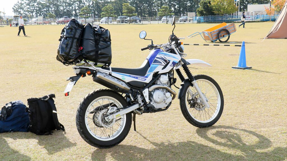 今回の旅で私、ラフ広報セキネの青セロー積載装備は……