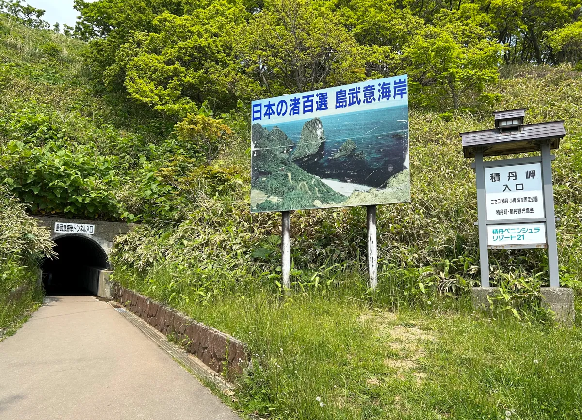 絶品のうに丼で心も体も飛びまくったあとは、神威岬と並ぶ積丹半島の2大絶景スポット「島武意(しまむい)海岸」へと向かいます。