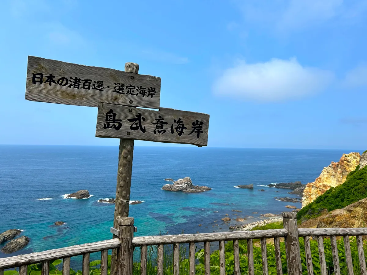 ここまでの海も「北国なのに南国」を感じさせてくれる実に綺麗な海でしたが…ところがココ「島武意海岸」の海は特に透明度の高いコバルトブルーの海となっております!